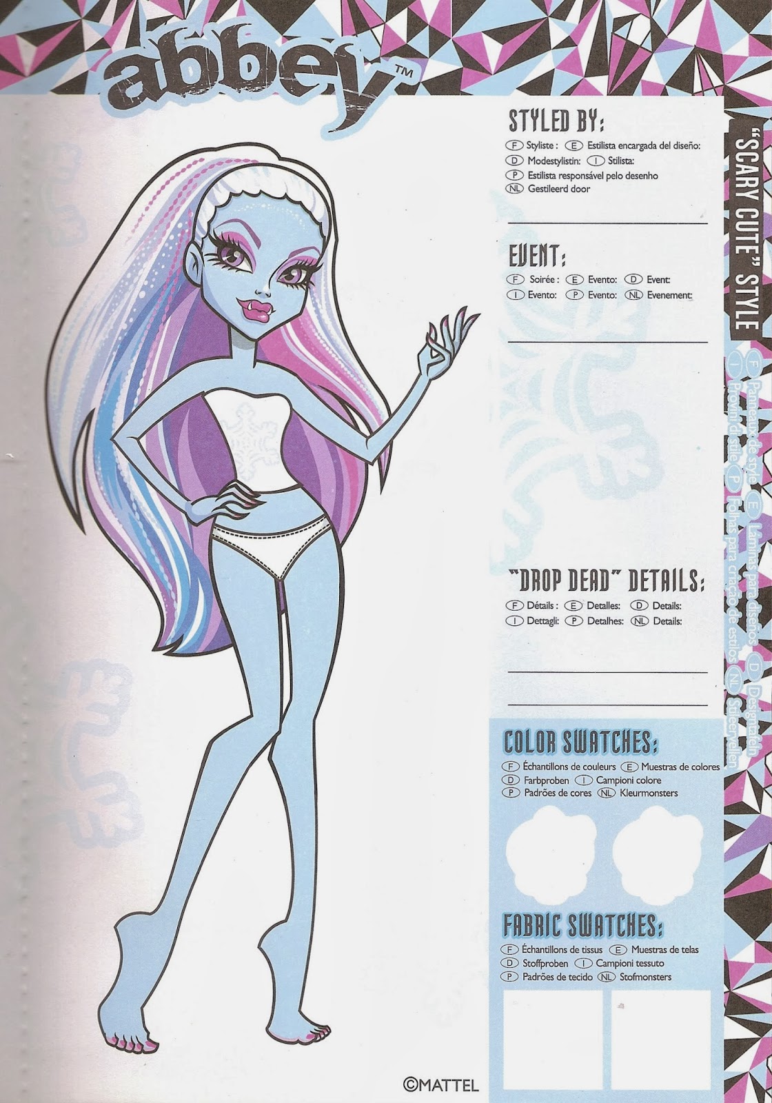 With Abbey and Spectra things get especially interesting. Since they were the newest ghouls on the block when this book was made, we get lots of random outfits that were never released for them. Check out this version of Abbey's SS outfit. I like this way more than the outfit we got!